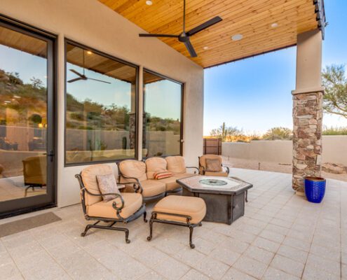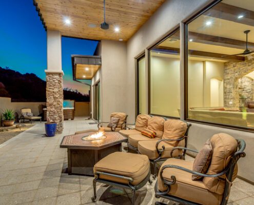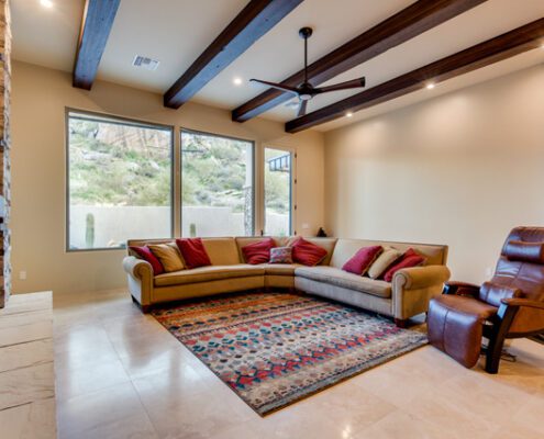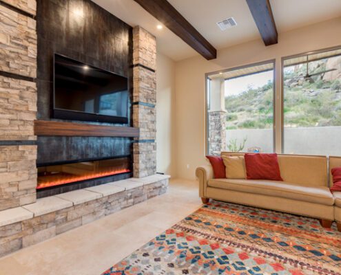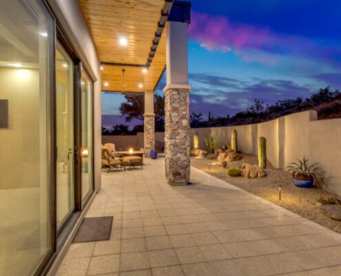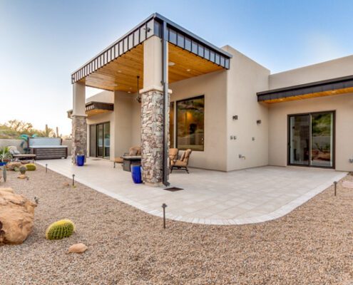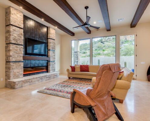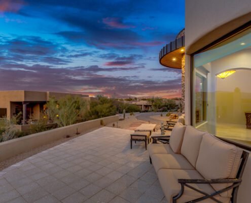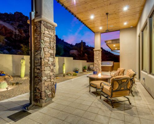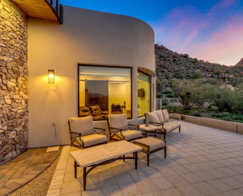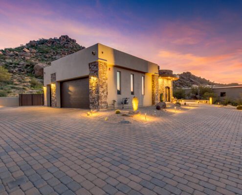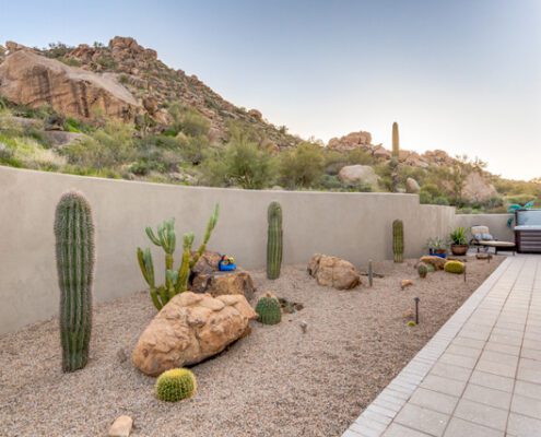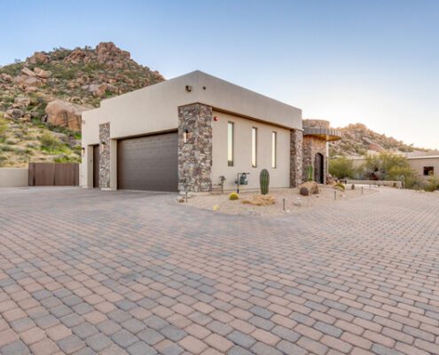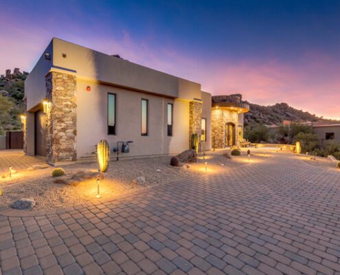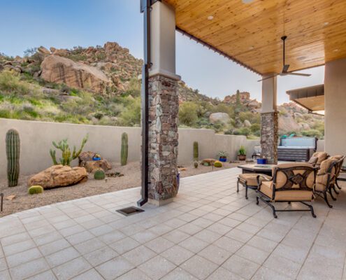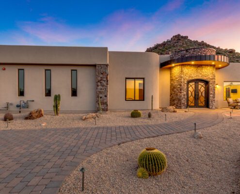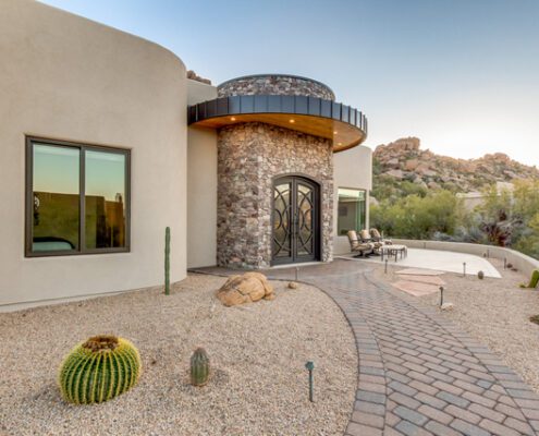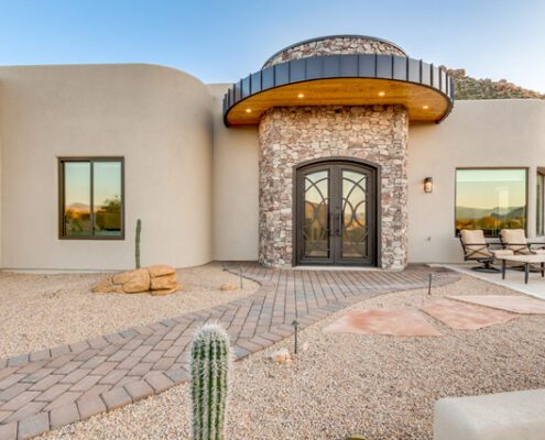 The clients owned a beautiful piece of land on the side of a mountain in North Scottsdale and dreamed of creating their forever home that would perfectly meet their needs. Peak One Builders created all construction plans, secured permits, built retaining walls to hold the mountain back, and built a one of a kind custom home, a 2-car garage, and finished it with beautiful landscaping planted on a once native mountain with hillside.
