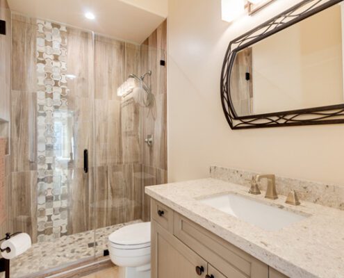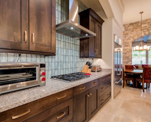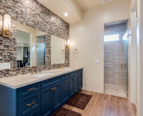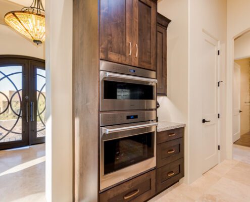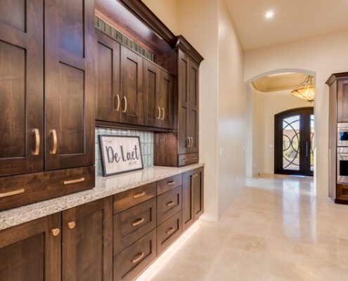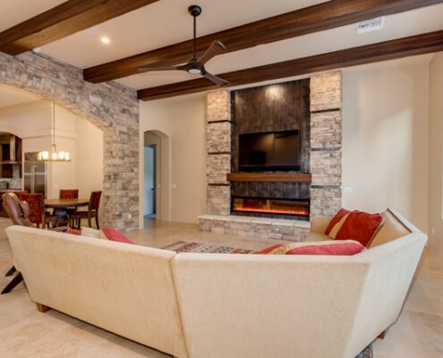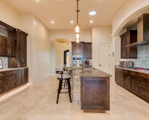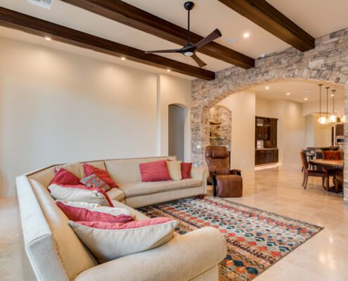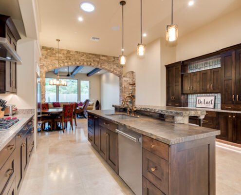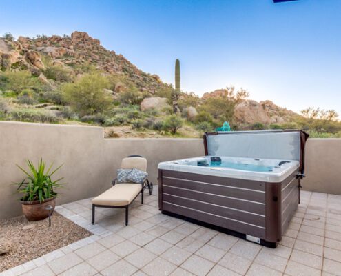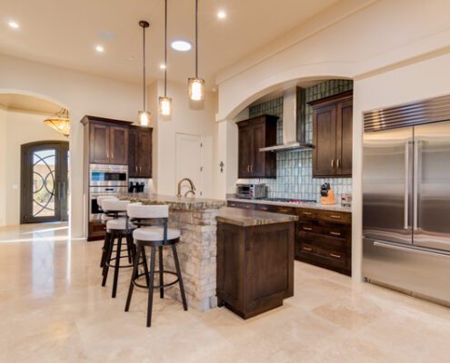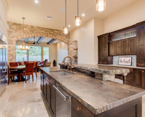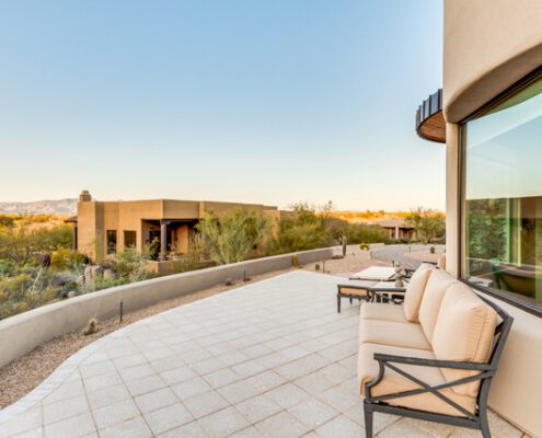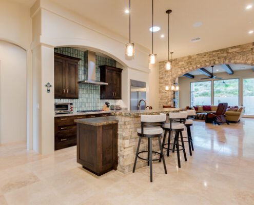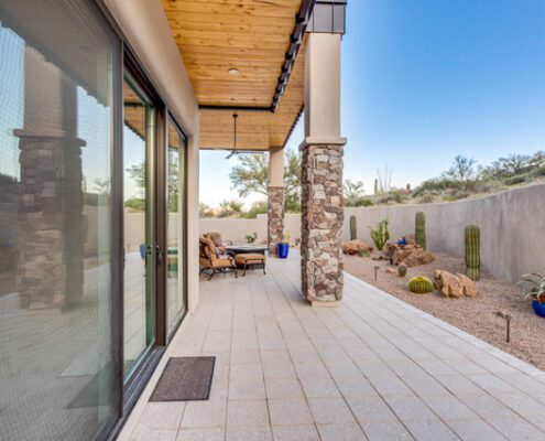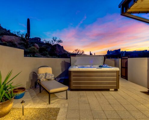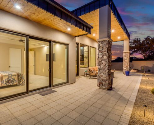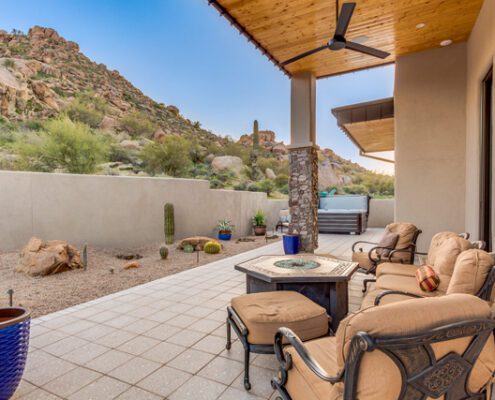 The clients owned a beautiful piece of land on the side of a mountain in North Scottsdale and dreamed of creating their forever home that would perfectly meet their needs. Peak One Builders created all construction plans, secured permits, built retaining walls to hold the mountain back, and built a one of a kind custom home, a 2-car garage, and finished it with beautiful landscaping planted on a once native mountain with hillside.