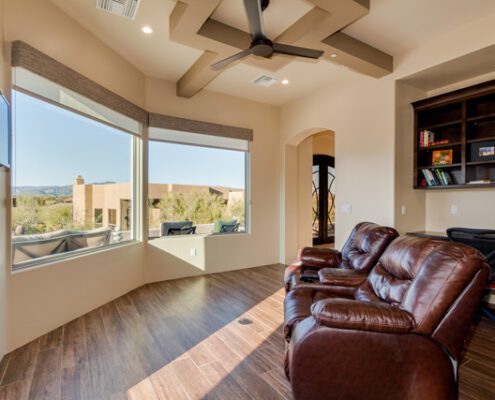 Luxury custom home construction in Scottsdale Arizona including 3 bedrooms, 2 bathrooms, an office, and stunning views.